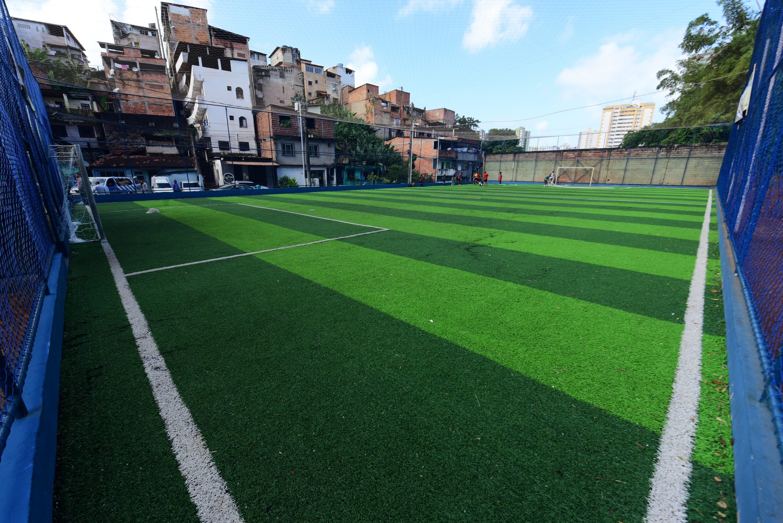 “Sabemos a importância do esporte e, por isso, fizemos uma verdadeira revolução nessa área através de um conjunto de programas e projetos que nenhuma outra cidade no Brasil tem. Somos a única com tantos campos públicos gratuitos. As comunidades não precisam pagar um real para utilizá-los”, destacou Bruno Reis. Segundo ele, a capital baiana já conta com mais 42 equipamentos com grama sintética prontos para serem inaugurados.