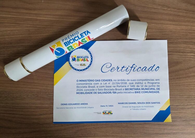 Salvador conquistou um importante reconhecimento nacional no campo da mobilidade urbana sustentável. O projeto Bike Comunidade, desenvolvido no âmbito do Movimento Salvador Vai de Bike, recebeu o Selo Bicicleta Brasil, concedendo pelo Ministério das Cidades iniciativas que utilizam a bicicleta como ferramenta de transformação social.